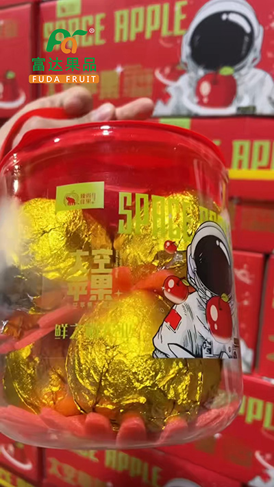 太空礼盒包装,里面是两个抱抱桶,桶子里装着小苹果,颜值超级高,节庆送礼需求旺!小苹果脆嫩甜蜜,多汁爽口,大人小孩都喜欢。